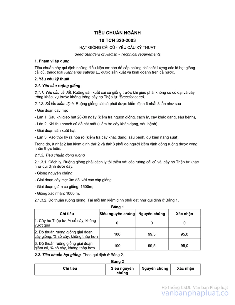- Tiêu chuẩn này áp dụng cho mọi lô hạt giống cải củ, sản xuất và lưu thông trong cả nước.