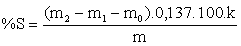 Công thức tính hàm lượng S tổng số trong mẫu khô tuyệt đối như sau:
