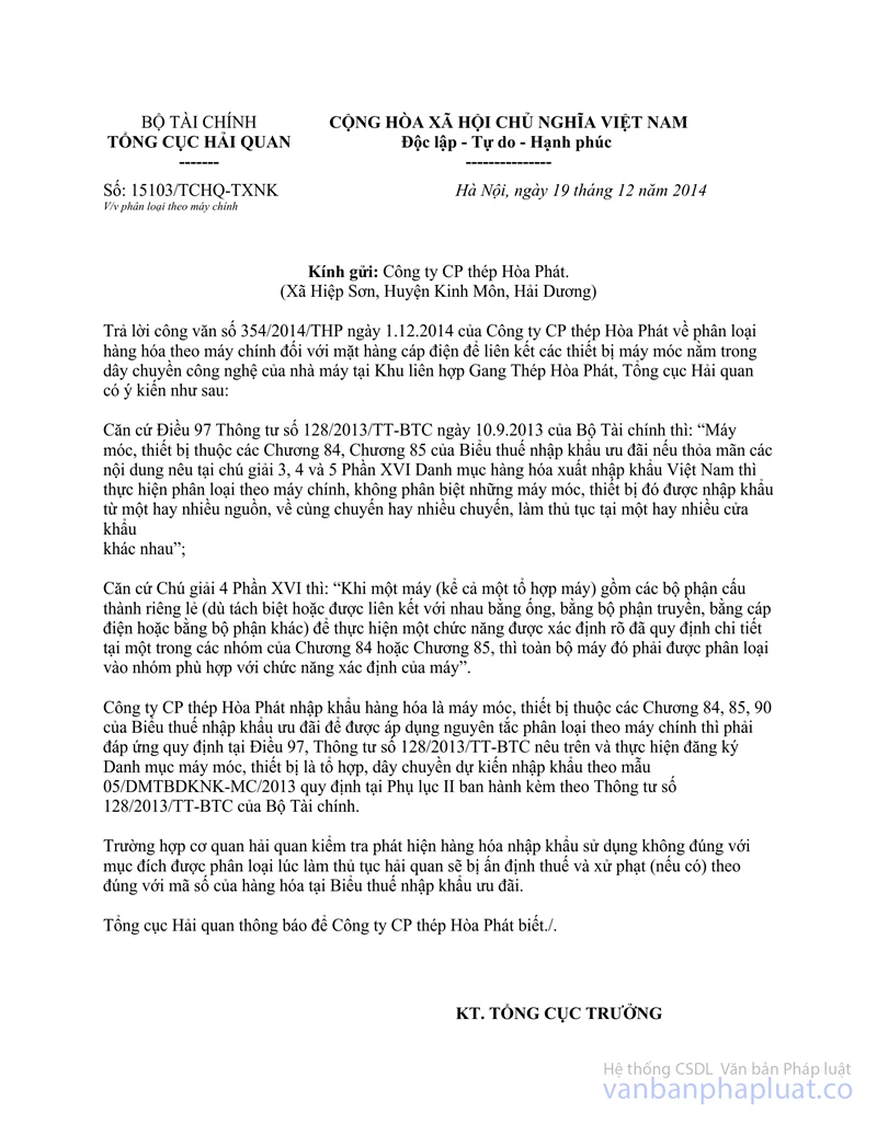Ngày 19.12.2014, Tổng cục Hải quan đã có công văn số 15103/TCHQ-TXNK hướng dẫn Công ty CP thép Hòa Phát; theo đó: