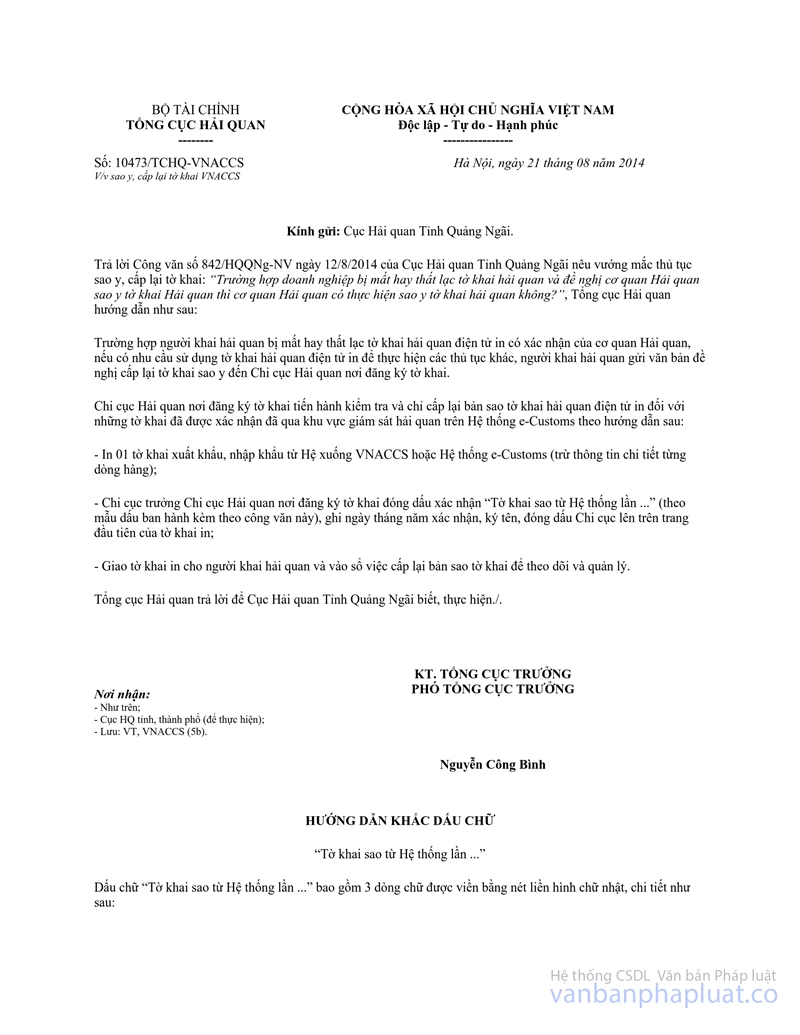 Tổng cục Hải quan thông báo để đơn vị biết và thực hiện./.