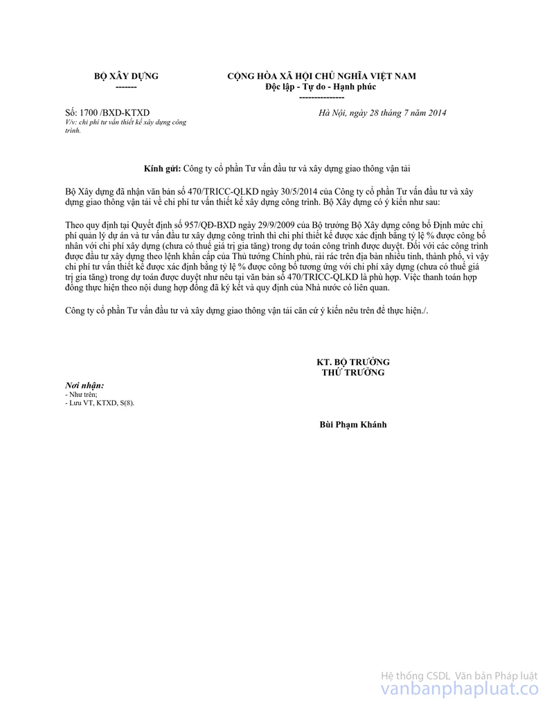 Nội dung toàn văn Công văn 3057/BXD-KTXD năm 2014 chi phí tư vấn thiết kế xây dựng công trình