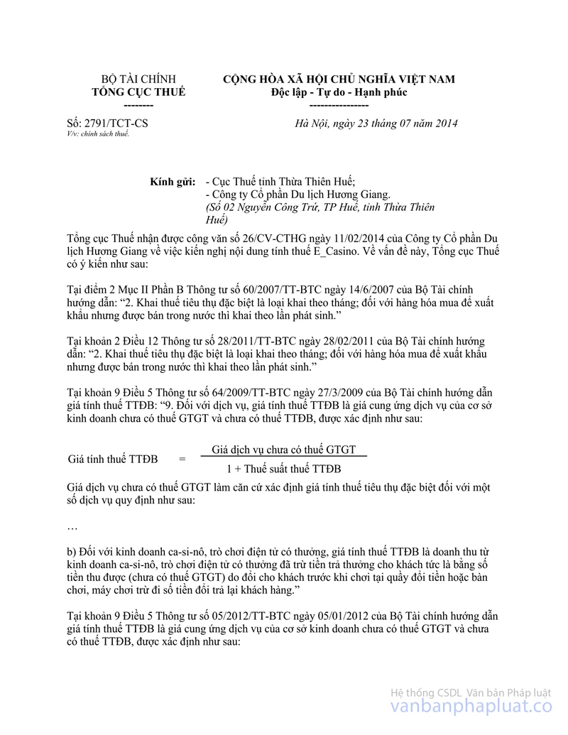 Nội dung toàn văn Công văn 429/TCT-CS 2015 chính sách thuế tiêu thụ đặc biệt hoạt động E Casino
