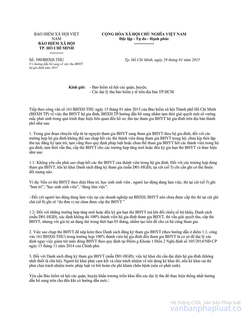 Nội dung toàn văn Công văn 434/BHXH-THU hướng dẫn bổ sung thu BHYT hộ gia đình Hồ Chí Minh