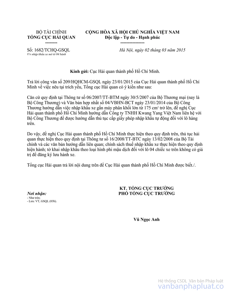 Nội dung toàn văn Công văn 4999/TCHQ-GSQL 2015 nhập khẩu 04 xe mô tô phân khối lớn