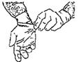 2. Giữ một găng tay và đưa một ngón tay vào phía trong găng tay còn lại.
