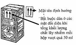 Bước 4d. Mũi tên định hướng ü Mũi tên định hướng nằm ở các mặt đối diện của hộp ü Phải dán khi tổng khối lượng chất lây nhiễm mỗi hộp vượt quá 50 ml.