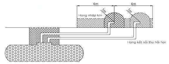 b) Họng chờ thu hồi hơi của cửa hàng được lắp đặt độc lập tương ứng với hệ thống van thở của bể chứa.