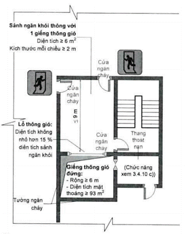 f) Khoảng đệm không nhiễm khói là một sảnh ngăn khói có thông gió tự nhiên qua giếng đứng