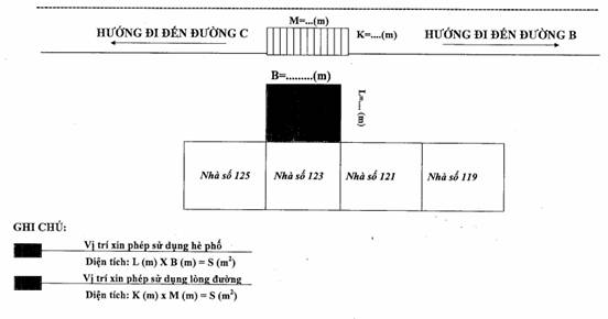 Xin sử dụng tạm thời hè phố (trước, sau hoặc bên hông nhà số), lòng đường:................