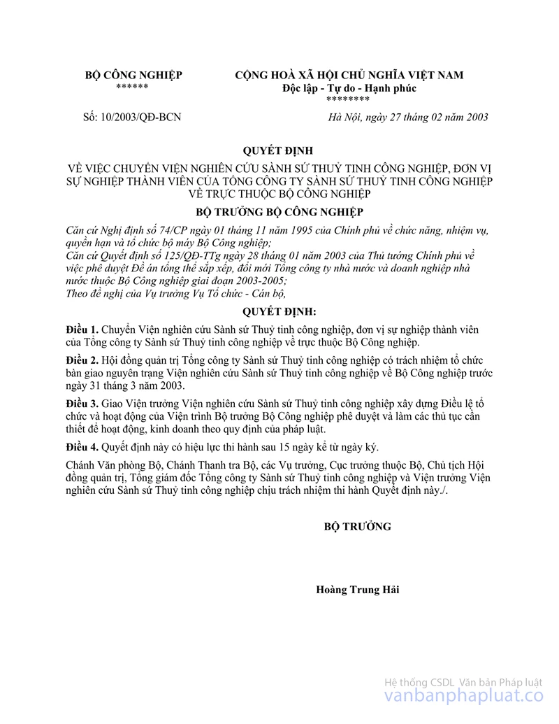 10/2003/QĐ-BCN ngày 06 tháng 6 năm 2003 của Bộ trưởng Bộ Công nghiệp về việc