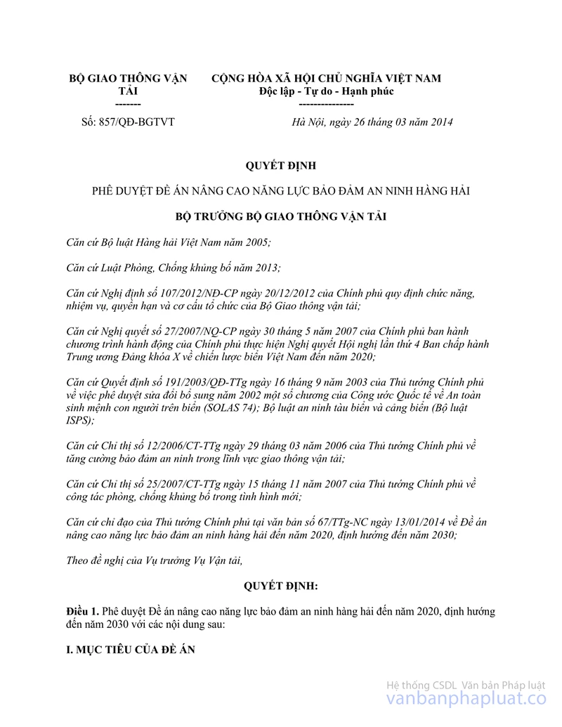 Căn cứ Nghị định số 107/2012/NĐ-CP ngày 20/12/2012 của Chính phủ quy định chức năng, nhiệm vụ, quyền hạn và cơ cấu tổ chức của Bộ Giao thông vận tải;