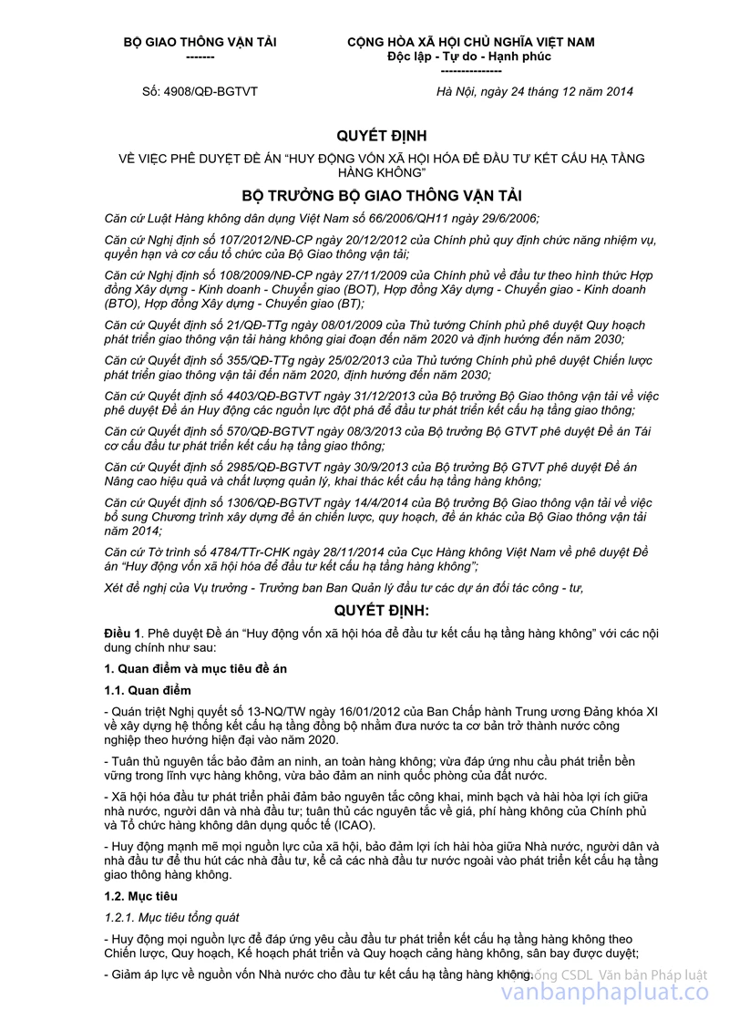 d) Triển khai thực hiện mạnh mẽ, quyết liệt và có hiệu quả các giải pháp của Đề án Huy động vốn xã hội hóa để đầu tư kết cấu hạ tầng hàng không tại Quyết định số 4908/QĐ-BGTVT ngày 24/12/2014 của Bộ trưởng Bộ GTVT.