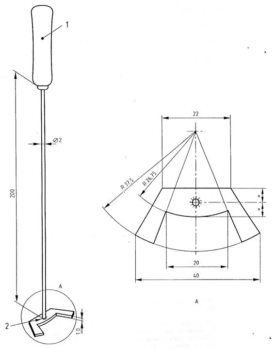 4.2.2 Giá để mẫu được treo tự do ở đầu dưới của ống thép không gỉ, ống này có đường kính ngoài bằng 6 mm và đường kính lỗ bên trong bằng 4 mm.