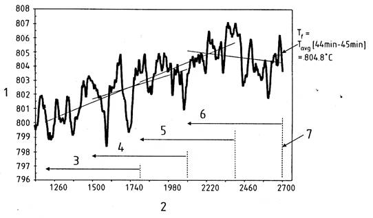 Sự chênh lệch (hồi qui tuyến tính) nhiệt độ là thấp hơn 2 oC trong khoảng 35 phút và 45 phút (chu kỳ 10 phút). Vì vậy tiêu chuẩn ổn định của nhiệt độ cuối cùng đạt được tại 45 phút, như vậy kết