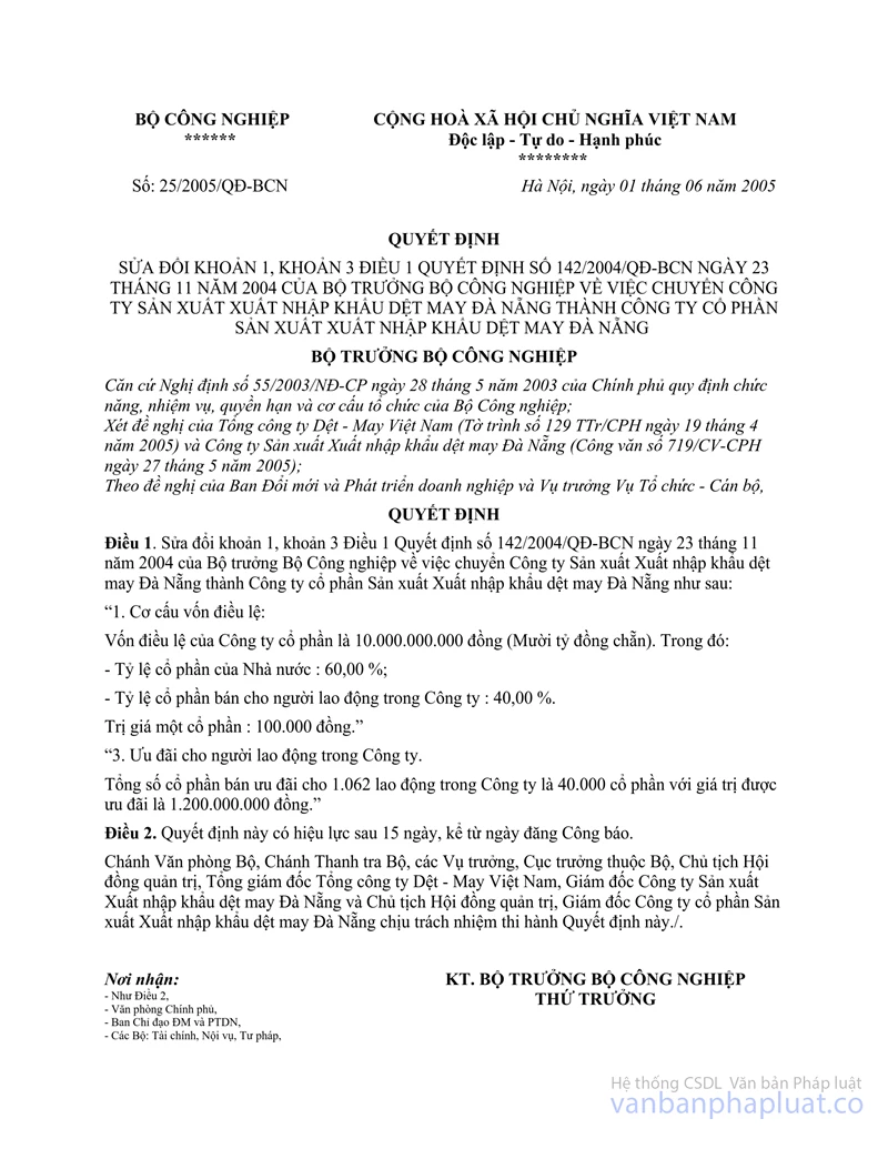 VỀ VIỆC CHUYỂN CÔNG TY SẢN XUẤT XUẤT NHẬP KHẨU DỆT MAY ĐÀ NẴNG THÀNH CÔNG TY CỔ PHẦN SẢN XUẤT XUẤT NHẬP KHẨU DỆT MAY ĐÀ NẴNG