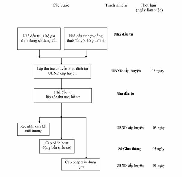 Nhà đầu tư thỏa thuận thuê đất hoặc nhận chuyển nhượng quyền sử dụng đất hoặc góp vốn liên doanh với các chủ sử dụng đất để xây dựng bến, bãi (Quy trình xem ở Phụ lục III).