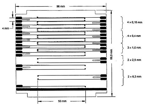 CHÚ THÍCH: Nếu mẫu thử không thể chuẩn bị bằng phương pháp xử lý mạch in, có thể sử dụng một mảnh vật liệu bề mặt phẳng có các điện cực phẳng như chỉ ra trên Hình B.1 được ép chặt lên bề mặt. Thực hiện tối thiểu 10 thử nghiệm tại các vị trí khác nhau trên cùng mẫu thử để tính đến sự phân tán độ ẩm tương đối tới hạn do cấu trúc không đồng nhất của vật liệu phức hợp. Giá trị kết quả trung bình được tính khi độ phân tán có thể chấp nhận được.