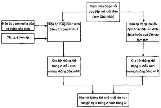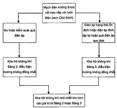 Hình C.2 - Sơ đồ xác định kích thước khe hở không khí cho mạch điện không được nối trực tiếp với lưới điện