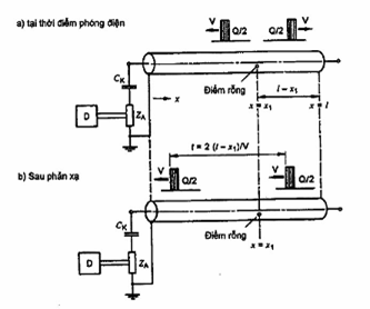 Hình 2 - Vị trí phóng điện tại khoảng cách x = x1 (Sóng lan truyền)