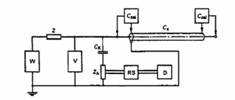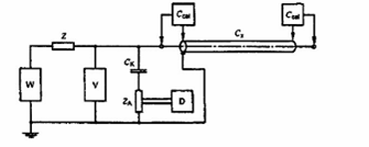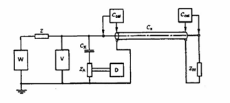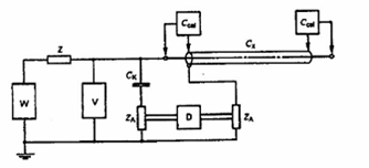 - Phương pháp đơn giản nhất là nối máy phát xung kép qua tụ điện điện áp cao CK và trở kháng đo ZA với dây nối không dài hơn 3 m.