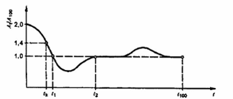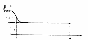 Giá trị tk tại At/A100 = 1,4 trên xếp chồng dương ban đầu được xác định từ đồ thị. Xác định thời gian t1 và t2 khi At/A100 ≤ 1,0 ở tất cả các diện tích xếp chồng âm. Khi tính đến các sai số của phép đo có thể bỏ qua các diện tích xếp chồng âm với cường độ lớn nhất đến -10 %.