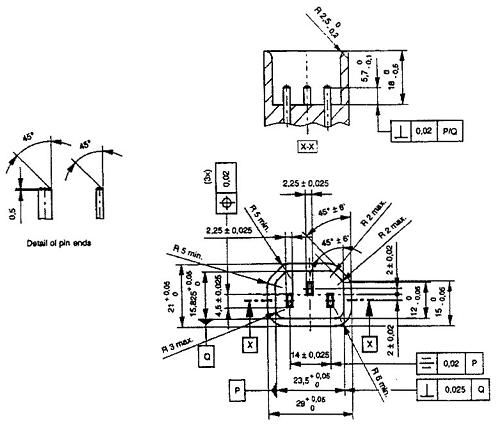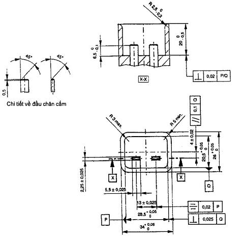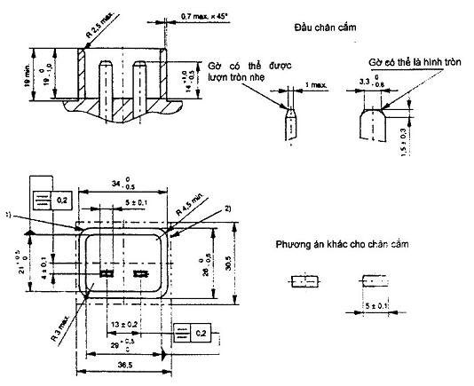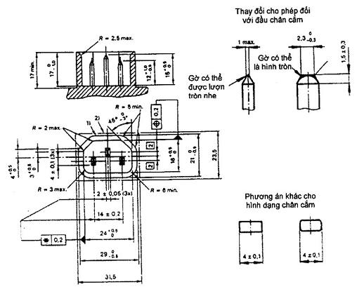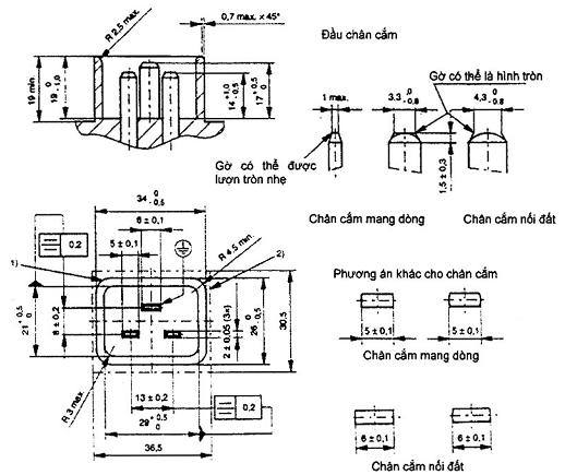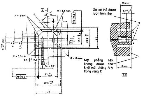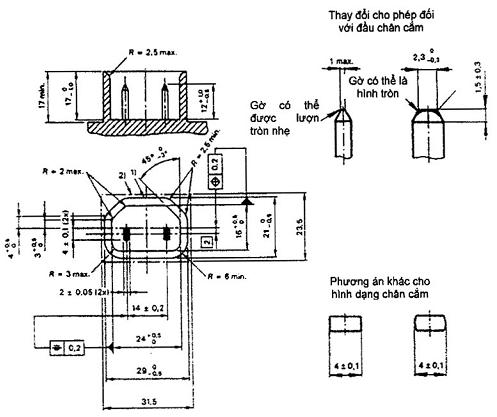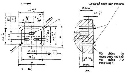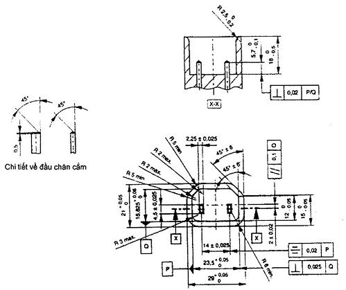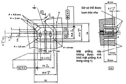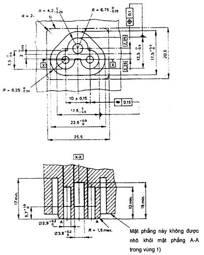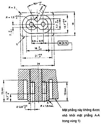 Ngoại trừ các kích thước đã cho, thiết kế không buộc phải tuân thủ bản vẽ này. Đối với các ký hiệu chỉ ra dung sai của hình dạng hoặc vị trí, xem ISO 1101.