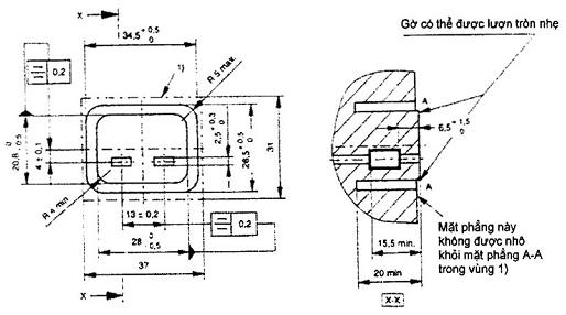 Đường bao 1) của phần mặt trước không được bị vượt quá hoặc giảm bớt, ở điểm bất kỳ, trong phạm vi khoảng cách từ bề mặt tiếp giáp là 14,5 mm.