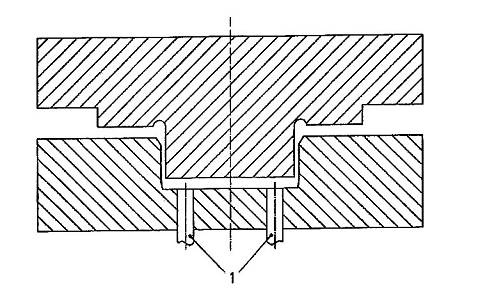 Khuôn có thể được lắp chốt đẩy. Nếu các chốt đẩy được sử dụng (xem Hình 2), chúng không được làm biến dạng mẫu thử. Nếu các phần được đẩy ra bằng đáy có thể chuyển động được của khuôn (xem Hình 3), không được để xảy ra rò rỉ đáng kể vật liệu tại chỗ nỗi giữa đáy và vách ổ.