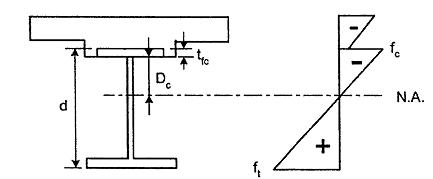 Đối với mặt cắt liên hợp trong vùng mô men dương, chiều cao bản bụng trong vùng chịu nén trong giới hạn đàn hồi, Dc, là chiều cao mà trên nó tổng đại số của các ứng suất trong thép mặt cắt liên hợp tức thời và mặt cắt liên hợp dài hạn do tĩnh tải và các hoạt tải kể cả xung kích là nén.