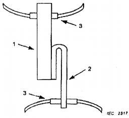b) bằng cách đặt các đầu ruột dẫn của mảnh thử nghiệm trong khối chữ V (xem Hình E.2b).