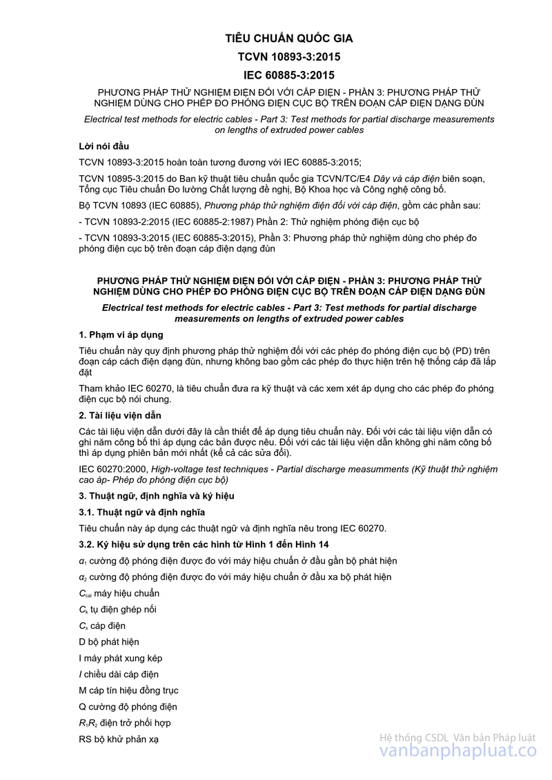 TCVN 10893-3 (IEC 60885-3), Phương pháp thử nghiệm điện đối với cáp điện - Phần 3: Phương pháp thử nghiệm đối với các phép đo phóng điện cục bộ trên đoạn cáp cách điện dạng đùn
