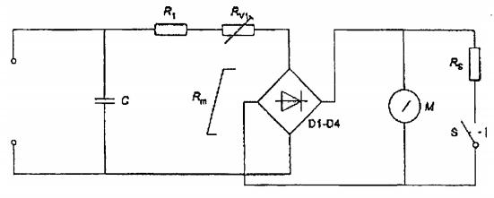 Dụng cụ đo bao gồm bộ chỉnh lưu/đồng hồ đo kiểu điện động với điện trở nối tiếp bổ sung, chúng được mắc song song với một tụ điện, như chỉ ra trên hình D.2. Tác dụng của tụ điện để giảm độ nhạy với thành phần hài và với các tần số khác lớn hơn tần số nguồn. Dụng cụ đo cũng có dải x10 đạt được bằng cách mắc song song cuộn dây của đồng hồ đo với điện trở không có thành phần cảm kháng. Cho phép có bảo vệ quá dòng, miễn là phương pháp sử dụng không làm ảnh hưởng đến đặc tính cơ bản của dụng cụ đo.