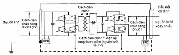 - Các xung từ mạch PV xuất hiện trên mạch nguồn được giảm một cấp OVC bằng cách ly, đến 4 000 V dựa trên điện áp hệ thống 1 500 V một chiều trong OVCI.