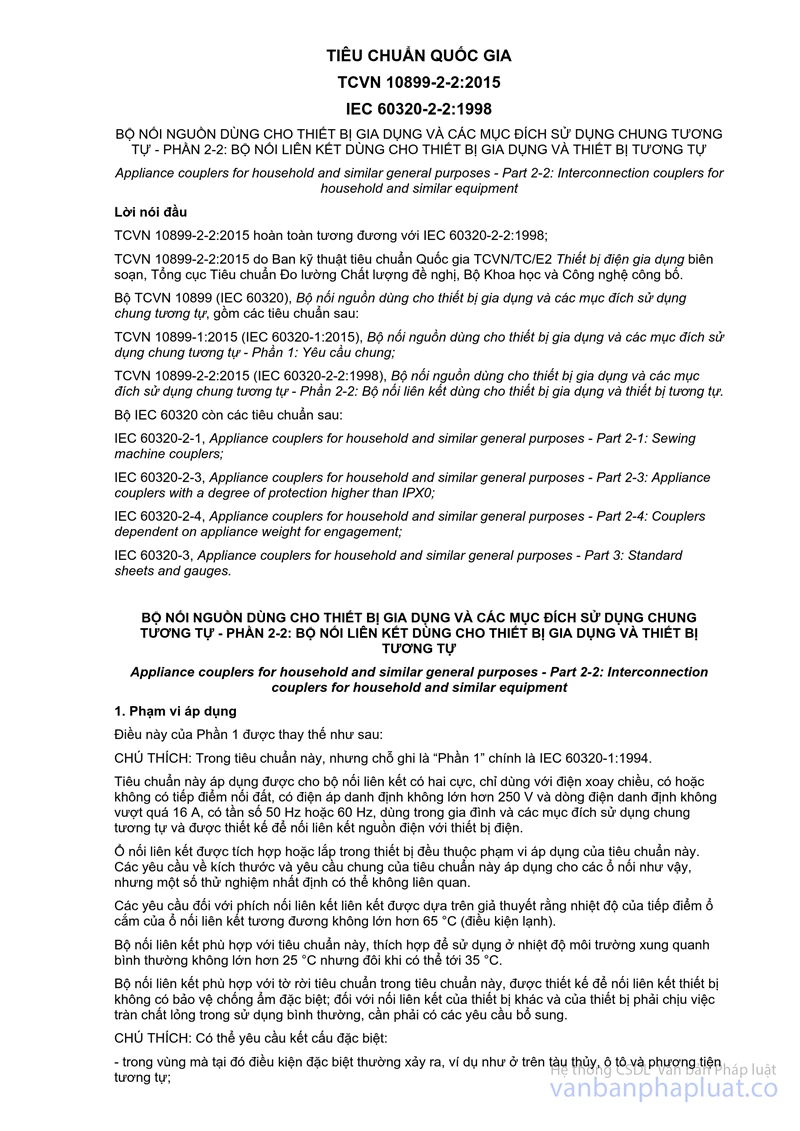 TCVN 10899 (IEC 60320) (tất cả các phần), Bộ nối nguồn dùng cho thiết bị gia dụng và các mục đích sử dụng chung tương tự