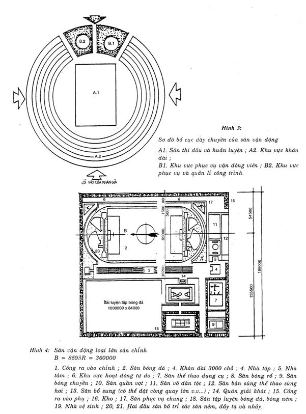 Sân thể thao tập trung gồm: sân tập luyện, sân thể thao cơ bản và sân vận động.