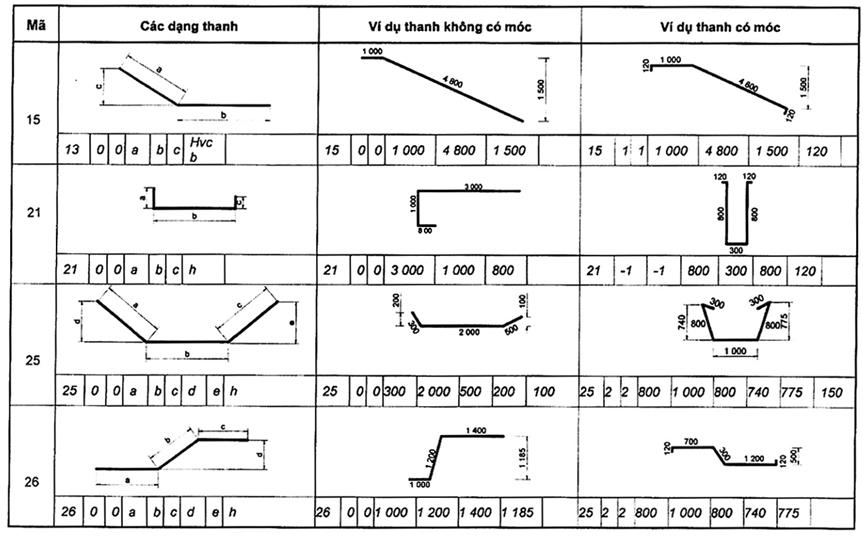 6. Mã dạng của thanh cốt thép (không bắt buộc)
