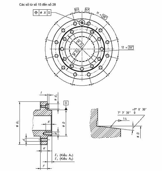 (Kiểu A2 dùng cho đầu trục chính số 3 và số 4; kiểu A1 và kiểu A2 dùng cho đầu trục chính từ số 5 đến số 28).