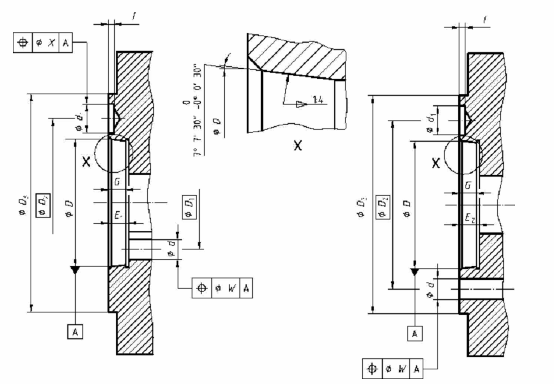 a Các kích thước chuyển đổi được giữa hệ Inch và hệ mét b E2 có thể thay cho E1 chỉ khi bề mặt bích đủ cứng vững không gây ra uốn cong khi vít được vặn chặt vào vòng bulông trong. |