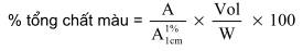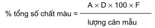 1) Chú thích - Một vài phẩm màu có tính tan ít hơn 5 g / 200 ml về việc sử dụng lượng cân ít hơn sẽ được trình bày trong chuyên luận, trong mục "kiểm tra"