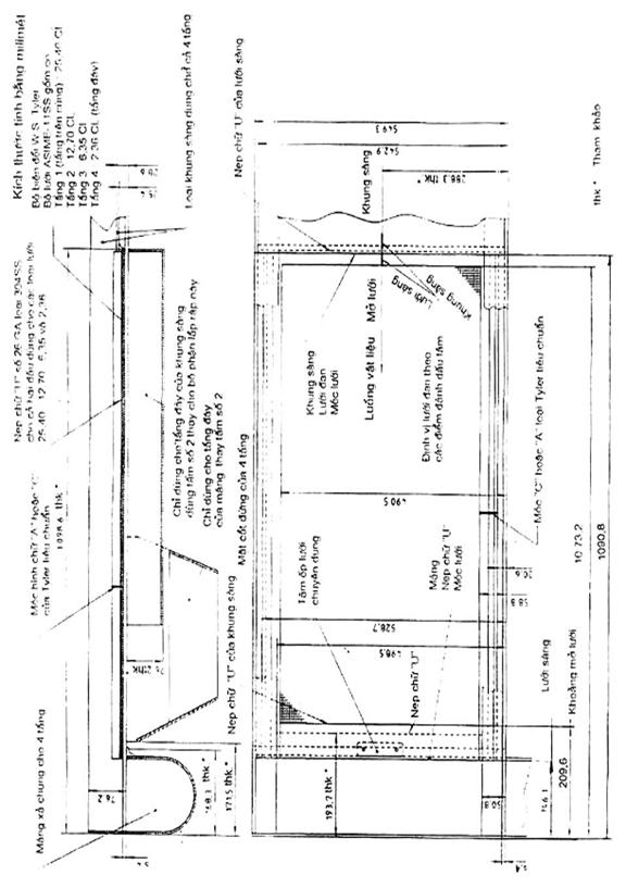 Chú thích - Tất cả các loại sàng được đan uốn sóng trừ loại sàng 2,36 mm x 2,36 mm được đan phẳng |