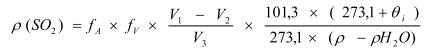 Nồng độ khối lượng lưu huỳnh dioxyt tính theo miligam trên mét khối có trong khí ống khói ở điều kiện tiêu chuẩn (ρn = 101,3 kPa và Ti = 273 K), quy về khí thải khô được tính theo biểu thức sau: