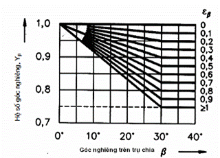 Yb: hệ số góc nghiêng (xem điều 8). Hệ số này bù cho việc cường độ mô men uốn tại chân răng bánh răng nghiêng, nhỏ hơn giá trị tương ứng của các bánh răng thẳng tương đương.