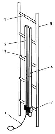 Hình A.7 - Bố trí phép thử tính năng đối với hệ thống chống rơi ngã cá nhân bao gồm một đường ray thẳng đứng