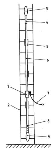 Chú thích 1 Điểm dưới cùng của dây được gắn chặt vào một thang hoặc một kết cấu khác cố định, trên dây có thể gắn một bộ hãm rơi ngã kiểu trượt.