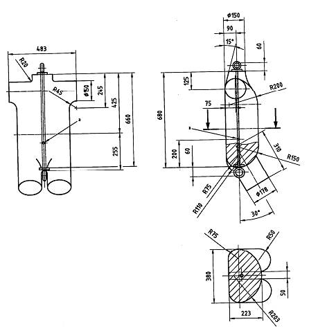 A.2.1. Mẫu thử mô phỏng theo nửa thân người (mẫu thử), có các kích thước được quy định trong Hình A.2. Đinh khuy treo phải có đường kính trong là 40 mm và đường kính mặt cắt ngang tối đa là 16 mm. Bề mặt phải nhẵn và, nếu làm bằng gỗ, phải được đánh senlắc hoặc đánh vécni.