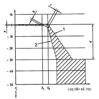 Hệ thống đo xung lực phải có tần số góc là 100 Hz và đường đặc trưng tần số giảm trong khoảng gạch chéo được minh họa ở Hình A.3.