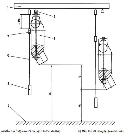 4. Bộ hãm rơi ngã kiểu trượt 5. Mẫu thử 6. Điểm chốt trung gian |
