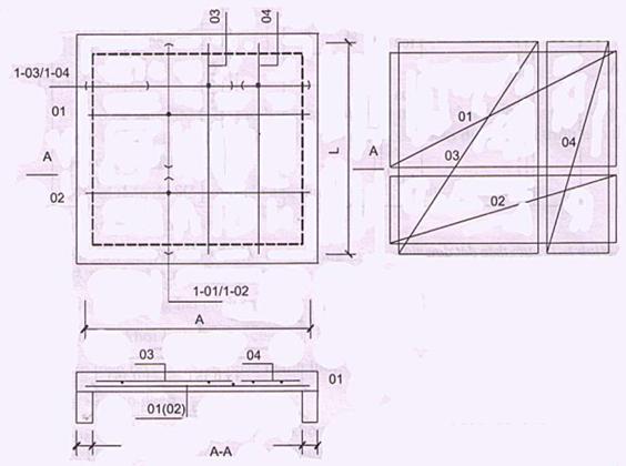 Hình D.1: Quy ước thể hiện lưới thép hàn trên bản vẽ: dạng 1; 2; 3