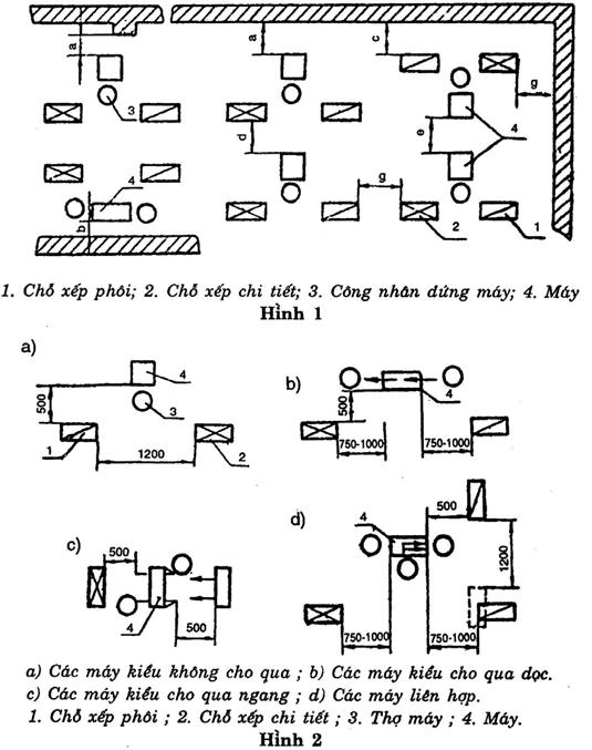 4.3. Khoảng cách giữa các máy và chỗ xếp phôi, chi tiết của chúng không được hẹp hơn khoảng cách nêu ở hình 2.